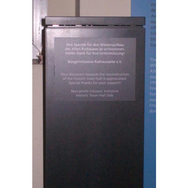 Es hat sich herausgestellt, dass die Errichtung des Barockflügel-Portals des Altes Rathauses (Leipziger Straße, gegenüber dem Kaufhaus New Yorker) die Verlegung der Hauptwasserleitung im Näherungsbereich des Portals erfordert. Das wiederum ist mit erheblichen Zusatzkosten verbunden...