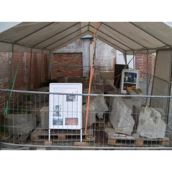 Das Provisorium hat ein Ende. Heute wurden Teile des Barockflügel-Portals, die im Hof der Saline unter einem Notdach lagerten, in die Großsiedehalle transportiert. Wir danken dem Technischen Halloren- und Salinemuseum herzlich für die Bereitstellung von Ausstellungsfläche und die gute Zusammenarbeit.