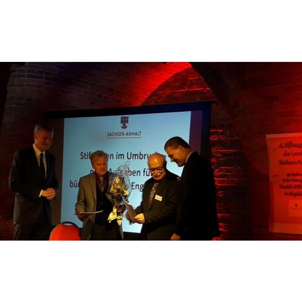 In einer würdigen Veranstaltung wurde heute den Vorsitzenden der Stiftungsorgane (Vorstand & Rat) beim 6. Stiftungstag des Landes Sachsen-Anhalt in Magdeburg die Urkunde und der Bescheid über die Anerkennung der Stiftung Altes Rathaus Halle (Saale) im Beisein des Innenministers des LSA überreicht.