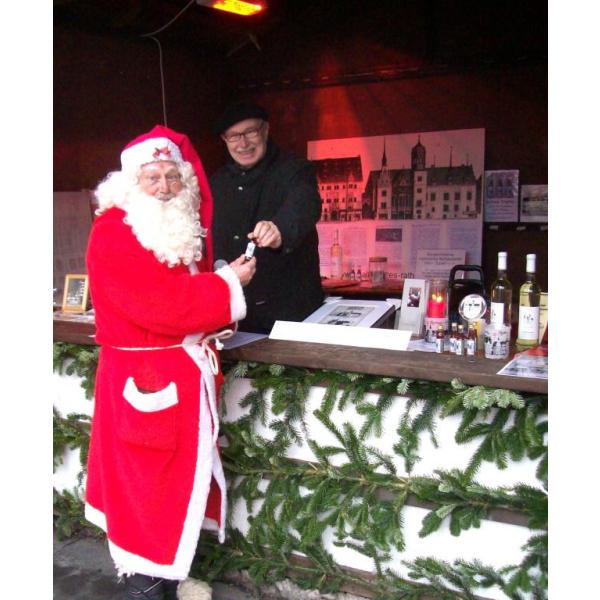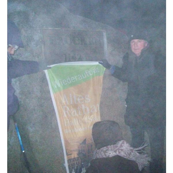 Frohe, gesunde und friedliche Weihnachtsfeiertage allen Mitgliedern der Bürgerinitiative Rathausseite e.V. sowie allen Freunden der historischen Ostseite (Rathausseite) des Marktplatzes. Wir bedanken uns auch herzlich bei den Besuchern unserer Info- und Verkaufsstände auf dem halleschen Weihnachtsmarkt. Durch Spenden und Einnahmen aus dem Verkauf unserer Produkte an sieben Tagen können über 1000 EUR auf die beiden Spendenkonten für den Wiederaufbau des Alten Rathauses eingezahlt werden.