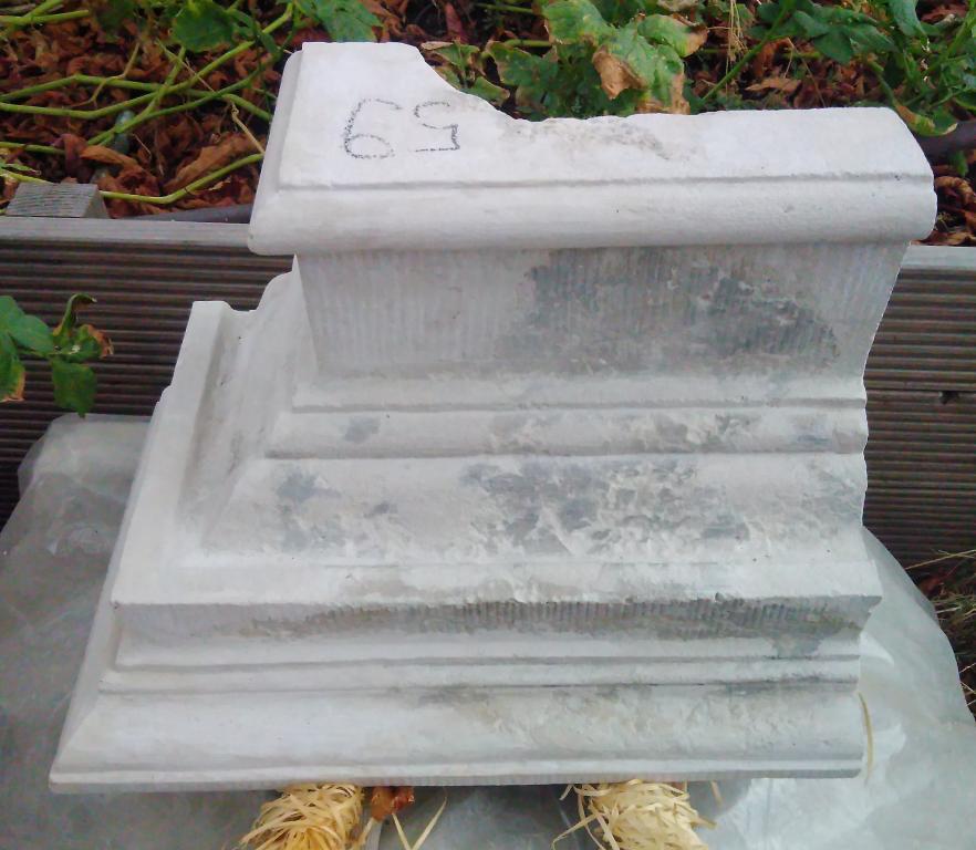 Foto (O. Korger): Portalstein Nr. 59, der linke Kämpferstein. Seine Restaurierung wurde von einem halleschen Ehepaar gestiftet.