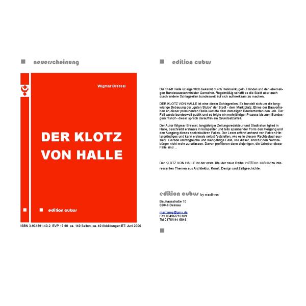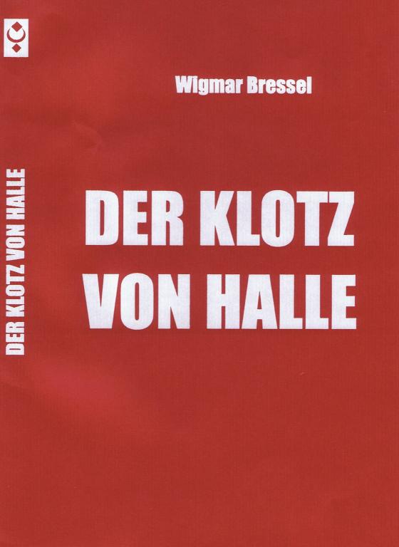 Abb. Umschlag zu "Der Klotz von Halle" von Wigmar Bressel. Diese Publikation zu Hintergründen der Bebauung des Ratswaage-Grundstücks (Marktplatz 24) gehört zum Bestand der Stadtbibliothek am Hallmarkt.