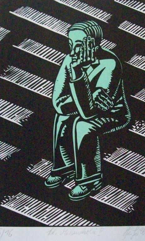 Abbildung: "Kleine Melancholie II", Farbholzschnitt von Uwe Pfeifer 1996; eines der angebotenen Kunstwerke, Startpreis 60,-