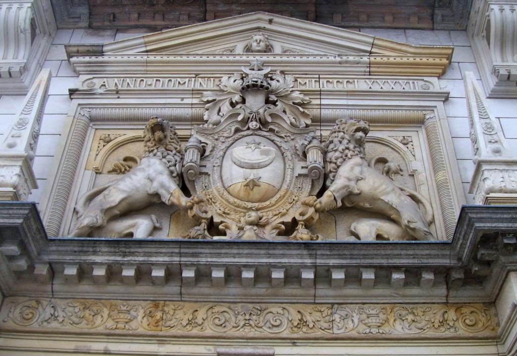 Foto: Stadtwappen über dem Portal des Stadthauses