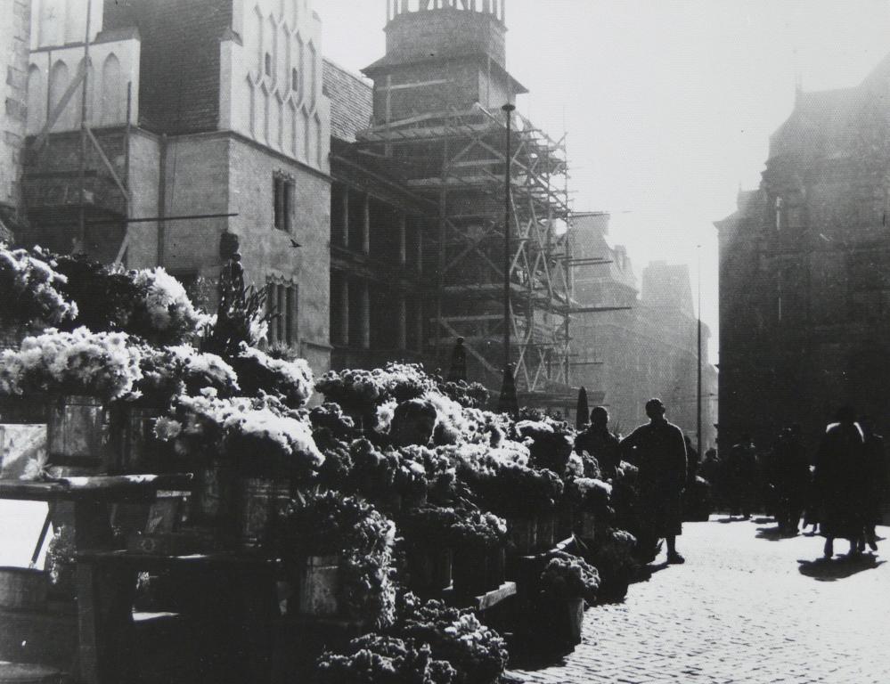 Foto: Altes Rathaus mit Blumenstand (Quelle: Marienbibliothek)