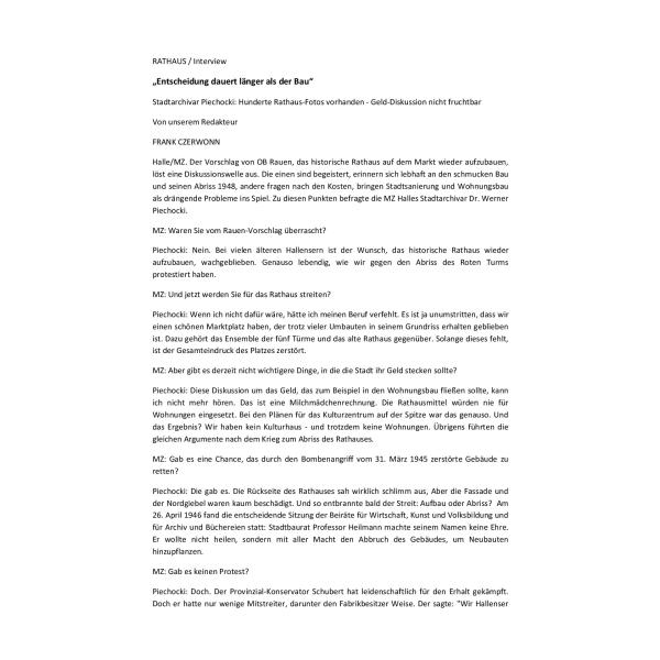 Stadtarchivar Piechocki: Hunderte Rathaus-Fotos vorhanden - Geld-Diskussion nicht fruchtbar