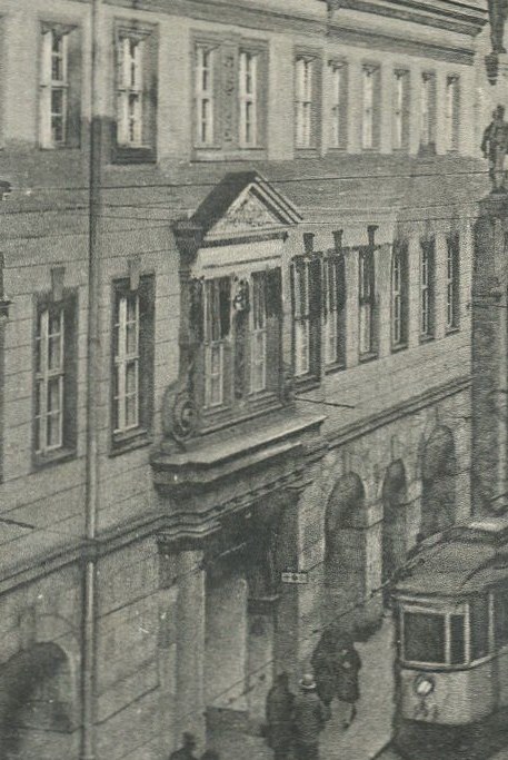 Abbildung: Barockflügel des Alten Rathauses mit Schmuckportal in der Leipziger Straße, Bildausschnitt (Sammlung J. Hauke)