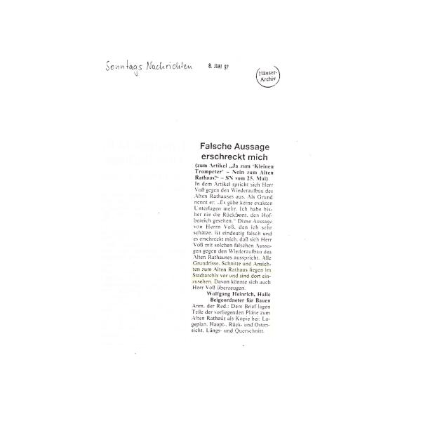 (zum Artikel "Ja zum 'Kleinen Trompeter' - Nein zum Alten Rathaus!" - SN vom 25. Mai)