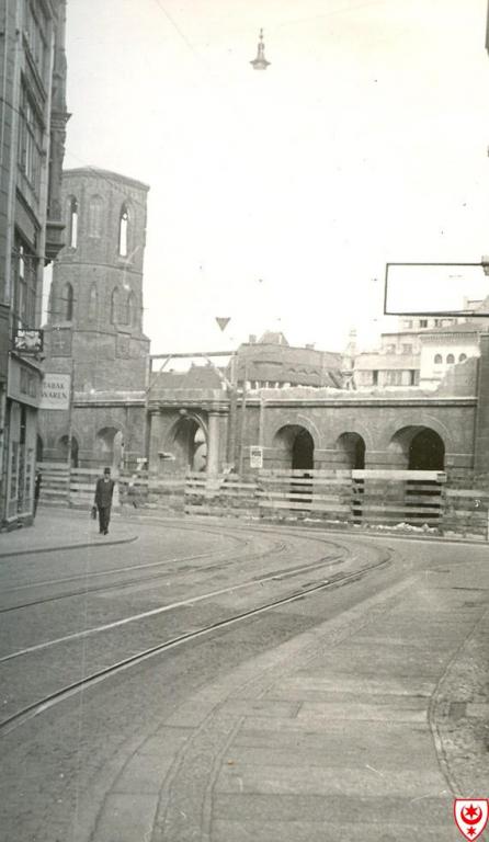Foto: Fortgeschrittenes Stadium der Beseitigung des Barockflügels des Alten Rathauses 1950 (Sammlung Gneist)