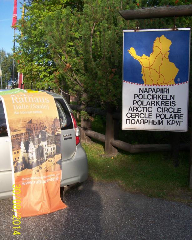 Am heutigen Freiwilligentag hat sich auch unsere Bürgerinitiative beteiligt. Am Infostand wurden Produkte mit einer Geschenkverpackung versehen. Sie sollen vor allem in der Vorweihnachtszeit das Spendenaufkommen erhöhen. Der Stand befand sich dieses Mal am Platz vor der Ulrichskirche. Unsere Vereinsfahne traf am gleichen Tage - vom Polarkreis (siehe Foto) und aus der finnischen Partnerstadt Oulu kommend - wieder in Halle ein.