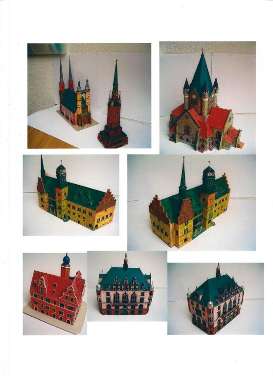 Foto: Modelle des Alten Rathauses, des Stadthauses und weiterer markanter Bauten am Marktplatz, die Herr Harry Büttner gegenwärtig im Schaufenster der Firma GFW Fischer in der Damaschkestr. 102 zeigt. Barspenden für den Wiederaufbau des Alten Rathauses werden auch dort entgegengenommen.