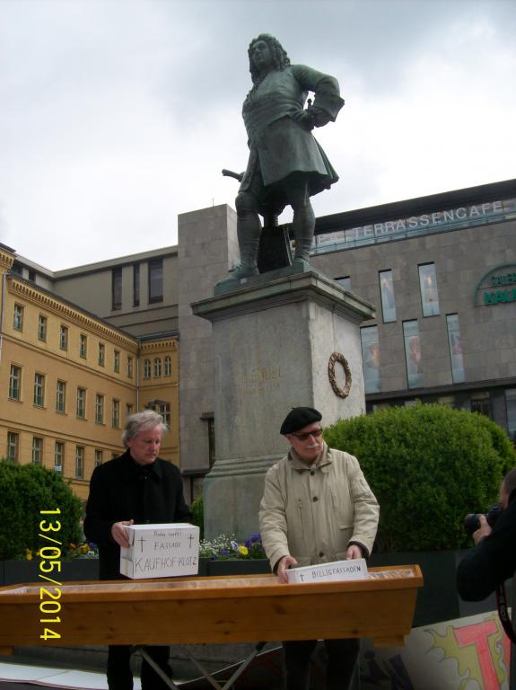 Foto: Symbolische Einsargung der Kaufhof-Fassaden im Vorjahr