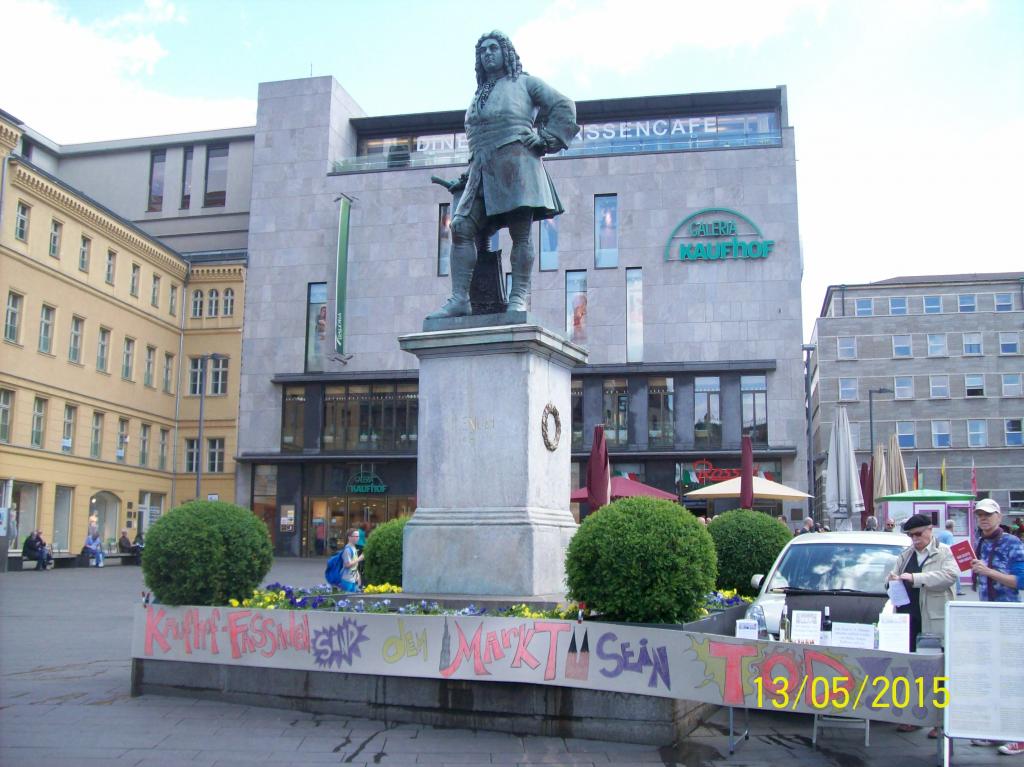 Deshalb führt die Bürgerinitiative Rathausseite e.V. am 13. Mai 2016 zwischen 12 und 16 Uhr die nächste Mahnwache für eine marktplatzverträgliche Veränderung der Kaufhof-Fassaden durch. Auch eine Veränderung des beklagenswerten Zustands der Kaufhof-Lieferantenzufahrt in der Kleinen Steinstraße wird angemahnt. Der Infostand befindet sich am Händeldenkmal.