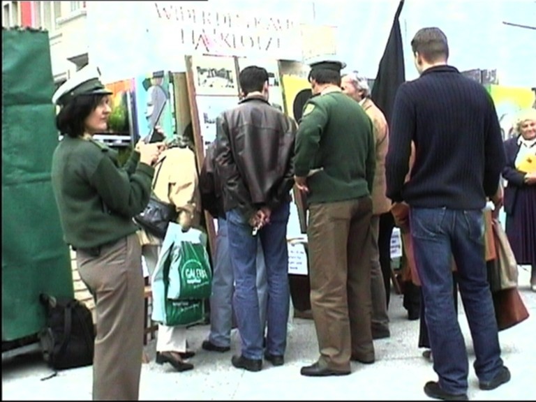 Wir mahnen eine - dem ehrwürdigen Marktplatz angemessene - Überarbeitung der Fassaden der Kaufhof-Gebäude Markt 24 und 20-21 an sowie eine altstadtverträgliche Lösung für die Kaufhof-Lieferantenzufahrt in der Kleinen Steinstraße einschließlich ihres Umfeldes. Zugleich erinnern wir daran, dass vor 20 Jahren das ehemalige Kinderkaufhaus (Markt 20) dem älteren Kaufhof mit seiner Billig-Fassade weichen musste. Zu diesem Thema siehe auch Infoblatt 2013-05 auf dieser Homepage. - Foto: Mahnwache zur Eröffnung der Kaufhof-Erweiterung 2004 mit Interessenten