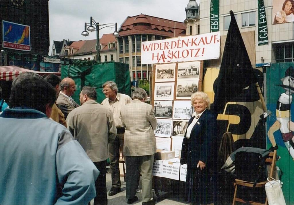 Am 13. Mai 2017 jährt sich zum 13. Male die Einweihung des wuchtigen Kaufhof-Erweiterungsbaus auf dem Grundstück der Ratswaage, der Nachbarin des Alten Rathauses. Die Genehmigung für die Errichtung des monströsen "Klotzes von Halle" war mit der Auflage verbunden, die ärmliche Fassade des nunmehr 23 Jahre bestehenden älteren Kaufhofes am Markt 20/21 zu überarbeiten.