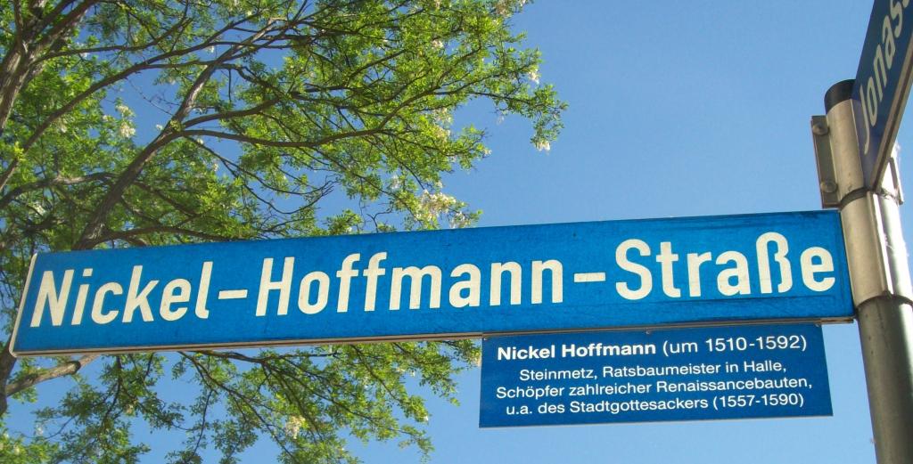 Der hallesche Ratsbaumeister Nickel Hoffmann wird durch heute angebrachte Zusatzstraßenschilder an der Nickel-Hoffmann-Straße noch mehr in das Bewusstsein der Bürger gerückt.