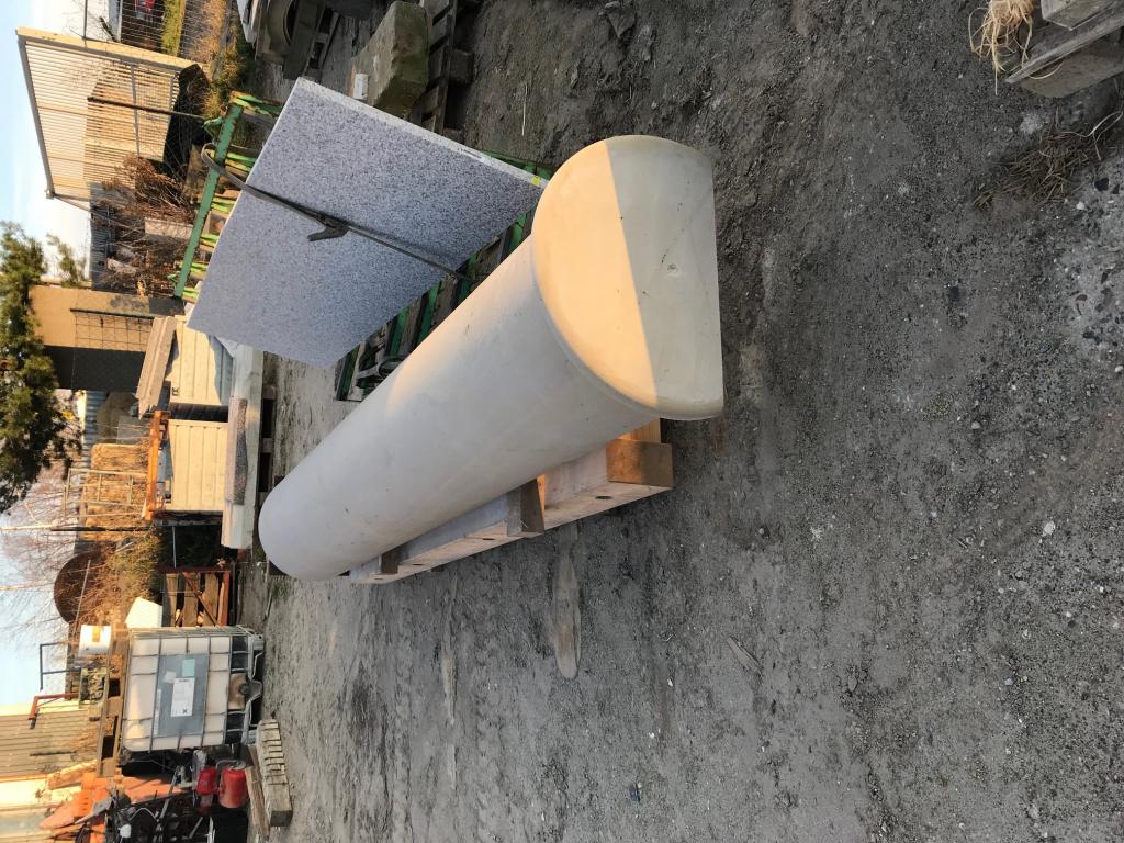 Nun ist auch der Schaft dieser Dreiviertelsäule (monolithisch aus einem Teil) fertiggestellt. Das Foto zeigt noch die Vollsäule, von der längs ein Viertel entfernt wurde. Weitere Fotos und Informationen unter MZ - Dein Verein .