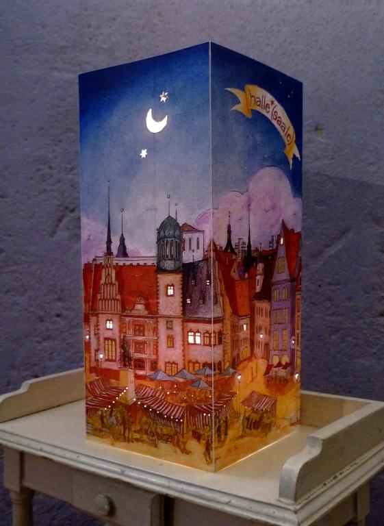 Den November-Stand betreut die Bürgerinitiative Rathausseite e.V. am Nachmittag des 2. Lichterfesttages. Mitglieder des Fördervereins der Stiftung Altes Rathaus Halle (Saale) bieten am Sonnabend, dem 4.11.2017, an der Einmündung der Leipziger Straße in den Marktplatz neben Informationen u.a Lichtobjekte und Kunstdrucke mit dem Rathaus-Motiv des halleschen Künstler F. G. Walther sowie Adventskalender an.