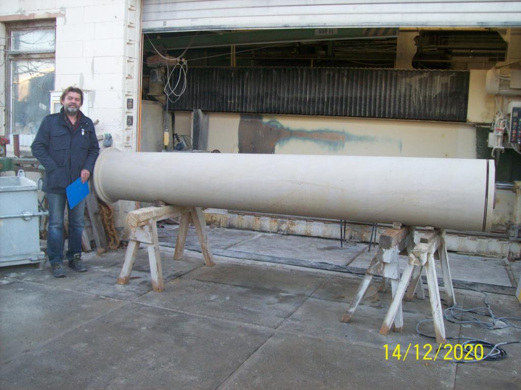Foto (BI): Die noch nicht ganz fertiggestellte Sandsteinsäule im Dezember 2020 auf dem Dresdner Werkstattgelände