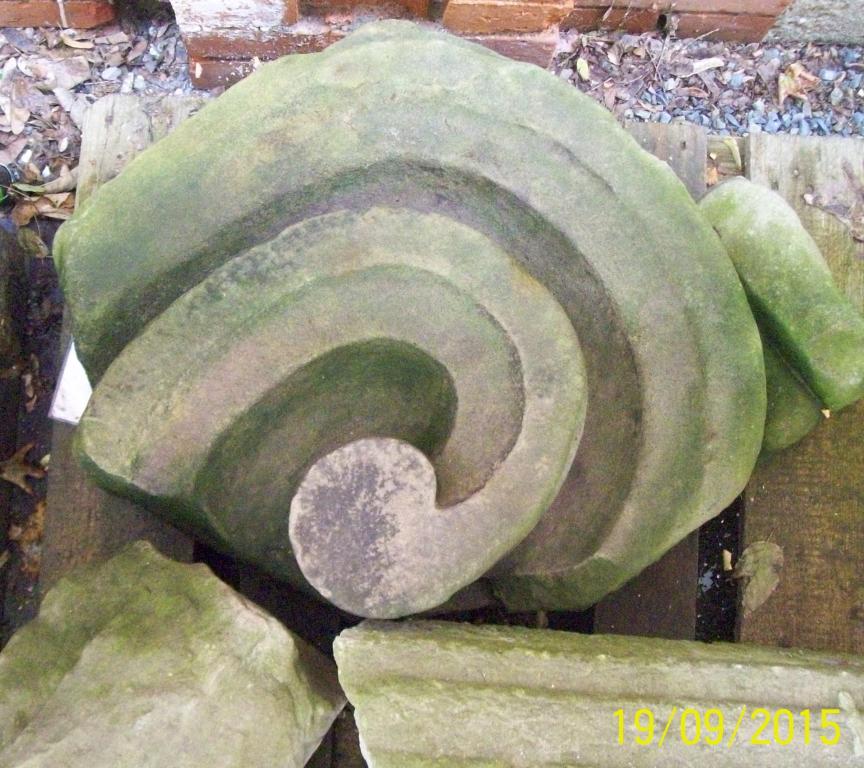Foto (BI-Archiv): Volute des Barockflügel-Portals vor der Sanierung