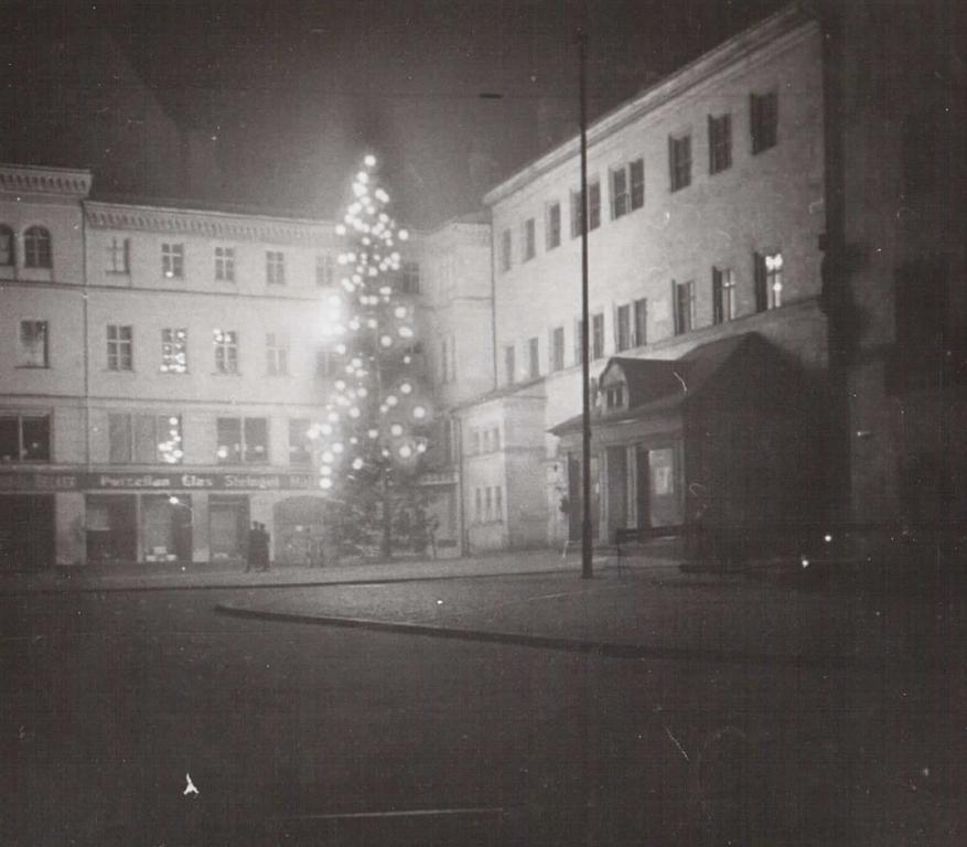 Foto: Weihnachtsbaum vor der Ratswaage, der "Schwester" des Alten Rathauses. Historische Aufnahme (Archiv von B. Schröter)