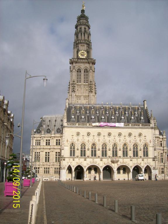 Foto: Rekonstruiertes Rathaus mit Belfried in Arras (Frankreich)