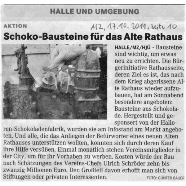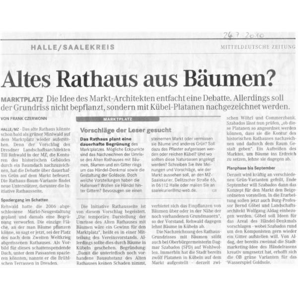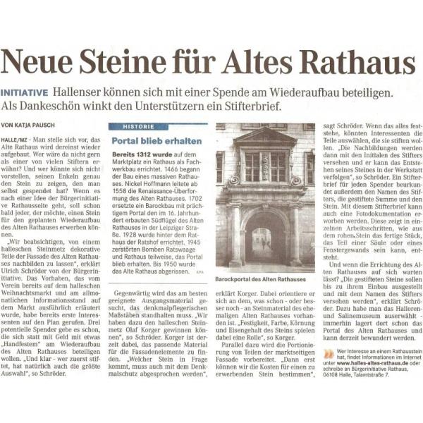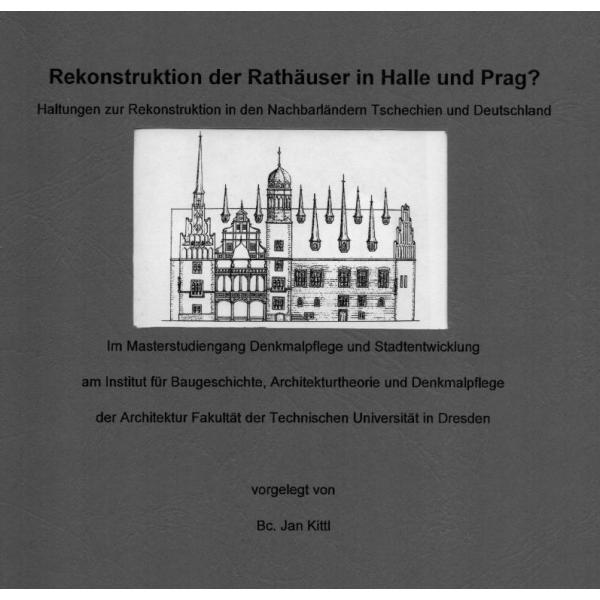 "Rekonstruktion der Rathäuser in Halle und Prag? Haltungen zur Rekonstruktion in den Nachbarländern Tschechien und Deutschland". Masterarbeit von Jan Kittl (CZ), am Institut für Baugeschichte, Architekturtheorie und Denkmalpflege der Architektur-Fakultät der TU Dresden. Die Mitteldeusche Zeitung berichtete darüber: -> Medien